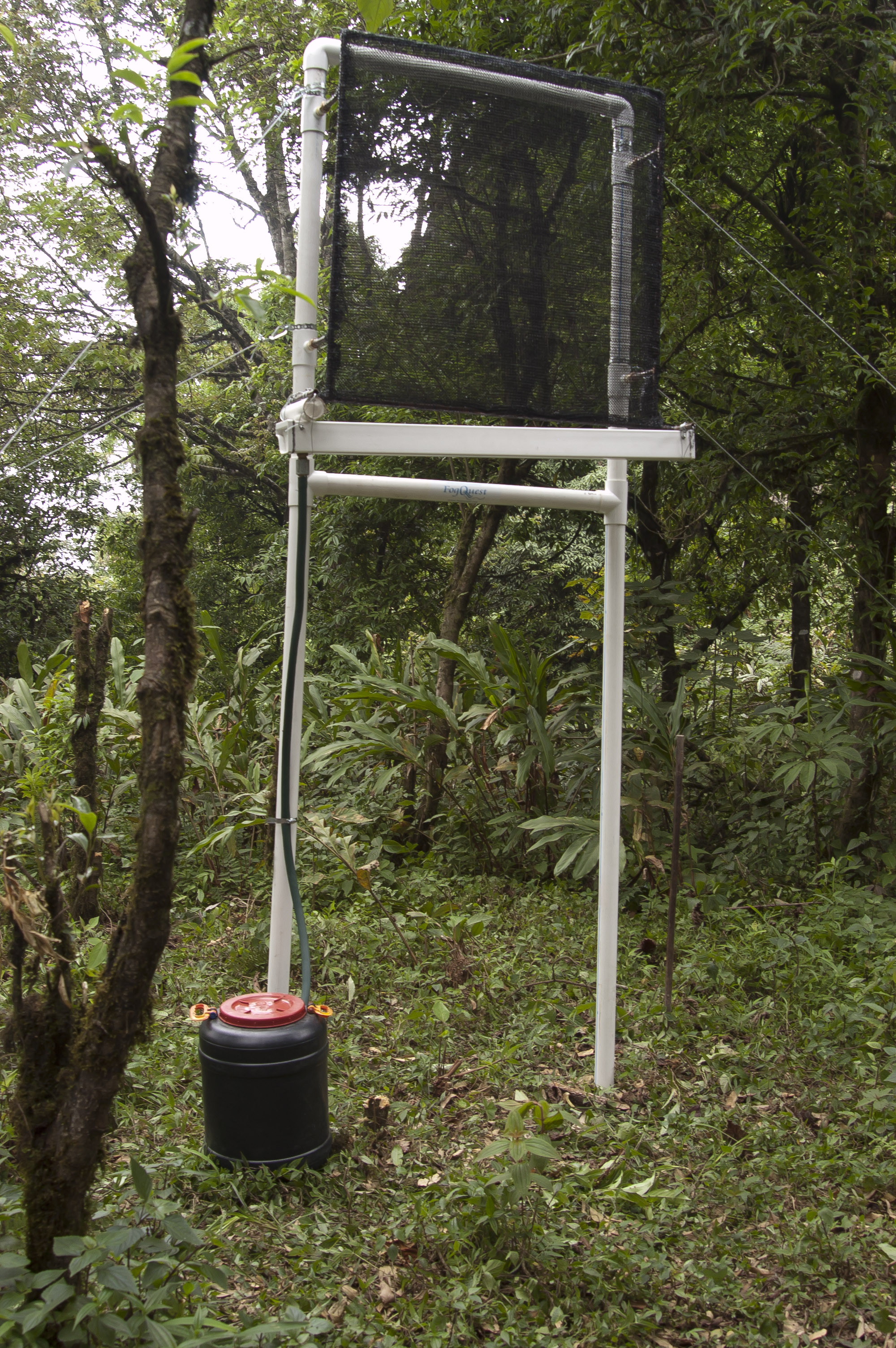 Three large multiple-panel systems are in operation in eastern Nepal, and two systems are currently under construction. The small fog collector shown at the left is part of a pilot project in a new location near Ilam.